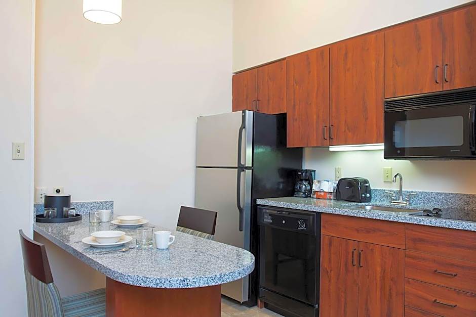 This studio includes a pull-out sofa and kitchenette area with wet bar. This room is located next to an elevator.